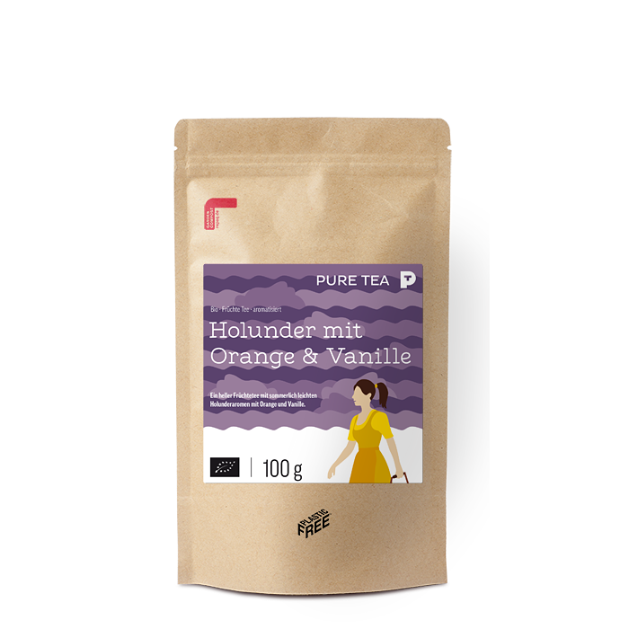 Ein heller Früchtetee mit sommerlich leichten Holunderaromen mit Orange und Vanille